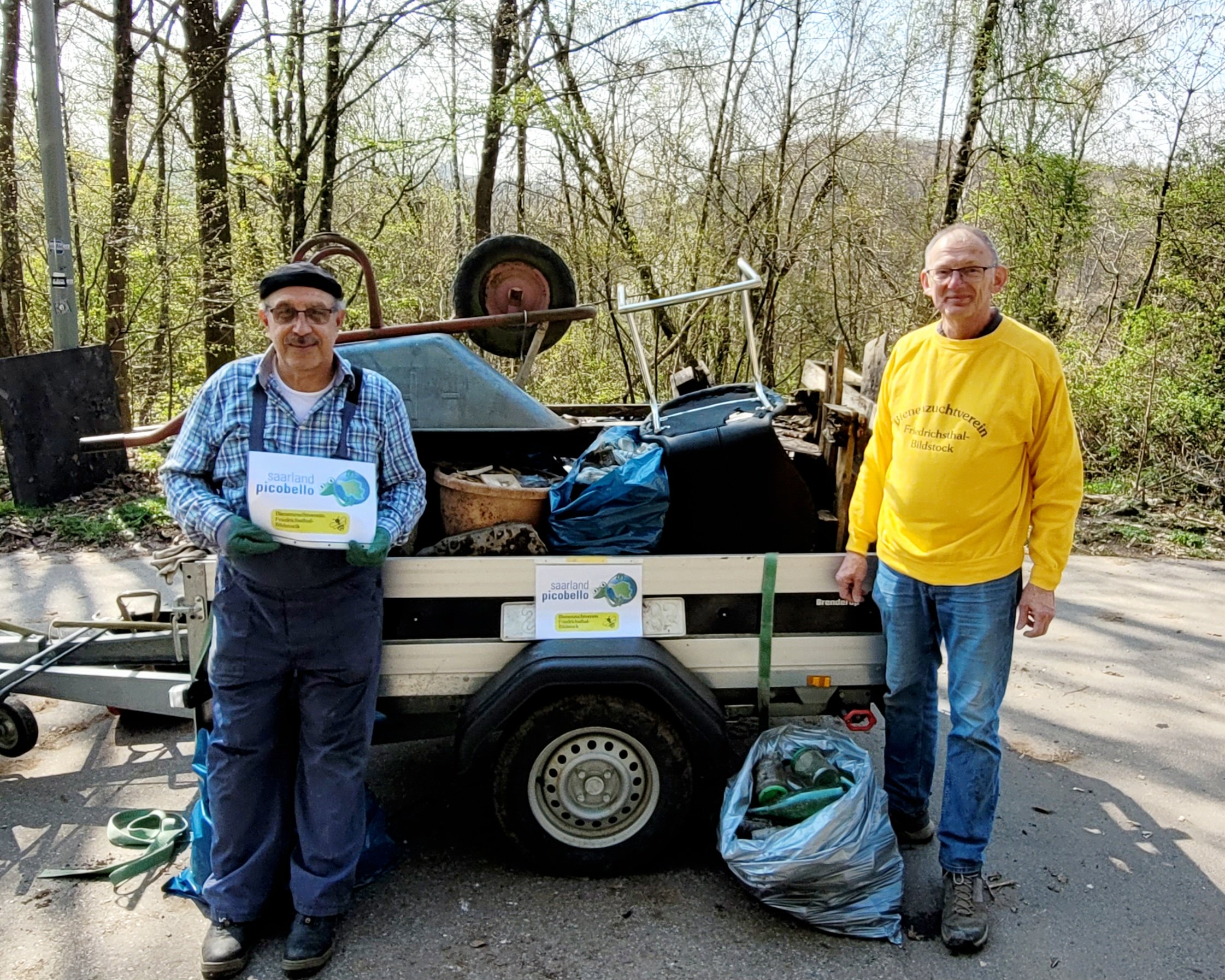 Jochen Lindemann, Bakhshali Kabiri und Nadine Klein ( Bürger für Friedrichsthal ) sammelten dabei Fliesen, Schuhe, Glasflaschen, Papier, Plastik, Europaletten, Rigipsplatten und einen Stuhl ein – das Ergebnis: ein voller Hänger und ein voller Kofferraum.