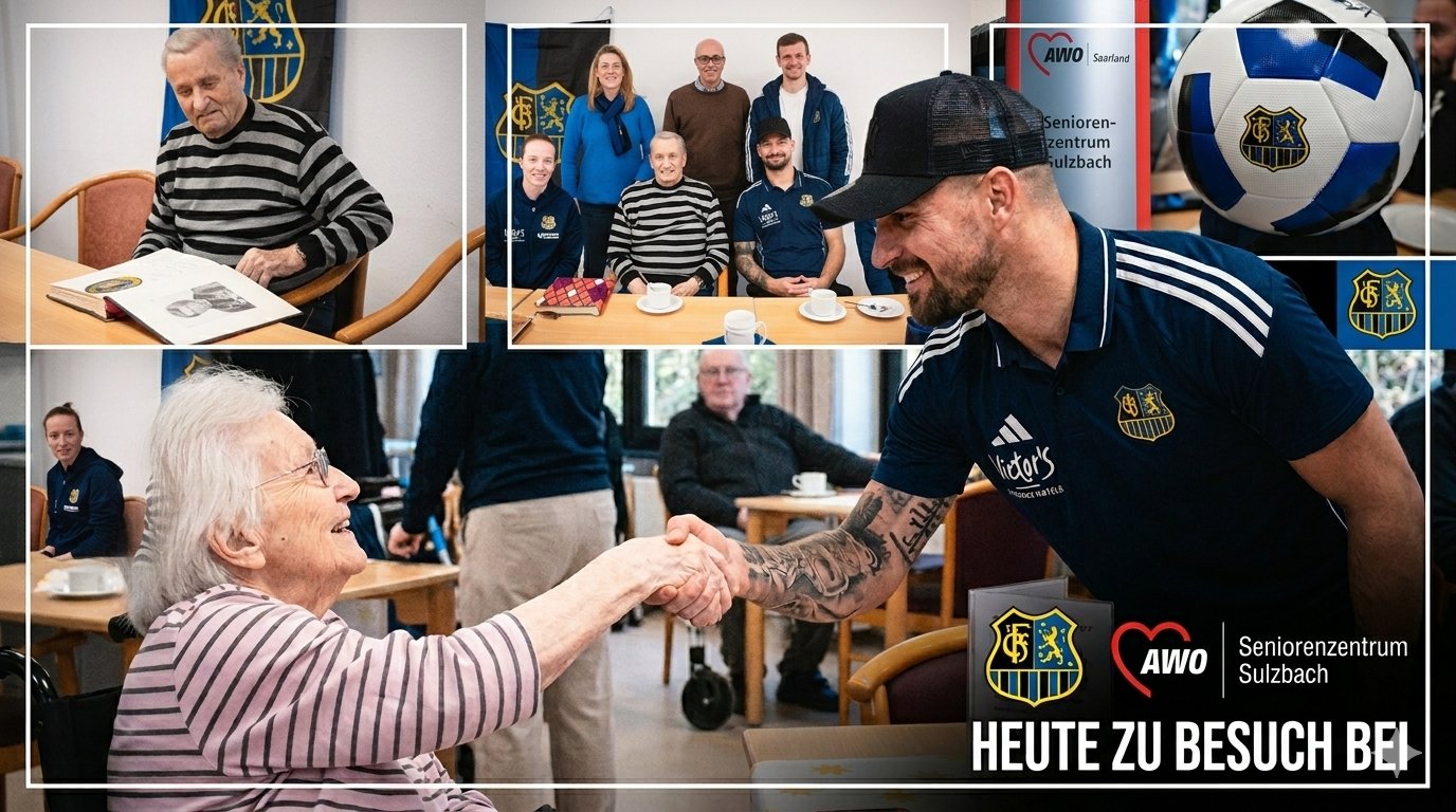 Die Delegation traf nach Angaben des AWO Seniorenzentrums pünktlich um 15 Uhr ein. Im Mittelpunkt des Besuchs stand einer der ältesten FCS-Fans der Einrichtung, der inzwischen 90 Jahre alt ist und nach eigenen Angaben kein Spiel seines Vereins auslässt. Er zeigte den Gästen ein Fotoalbum mit Aufnahmen aus der Vereinsgeschichte. Es wurden Fotos gemacht und Autogramme verteilt – auch an weitere anwesende Bewohnerinnen und Bewohner sowie Besucher.